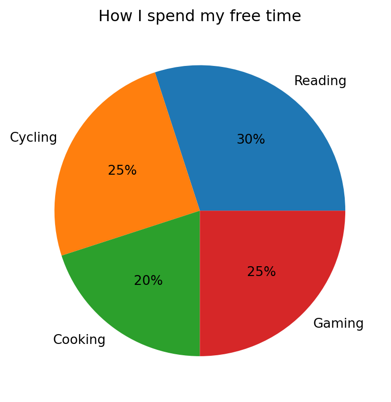 A pie chart shows parts of a whole. Use sparingly — bar charts are almost always more readable.